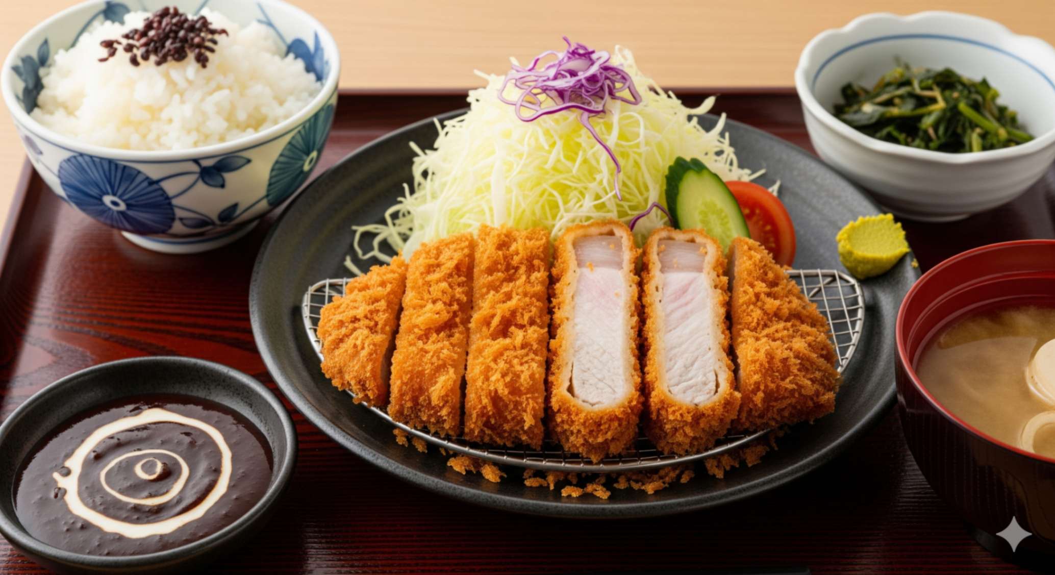山梨のブランド豚「甲州富士桜ポーク」を約250〜300グラムも使った極厚とんかつ。